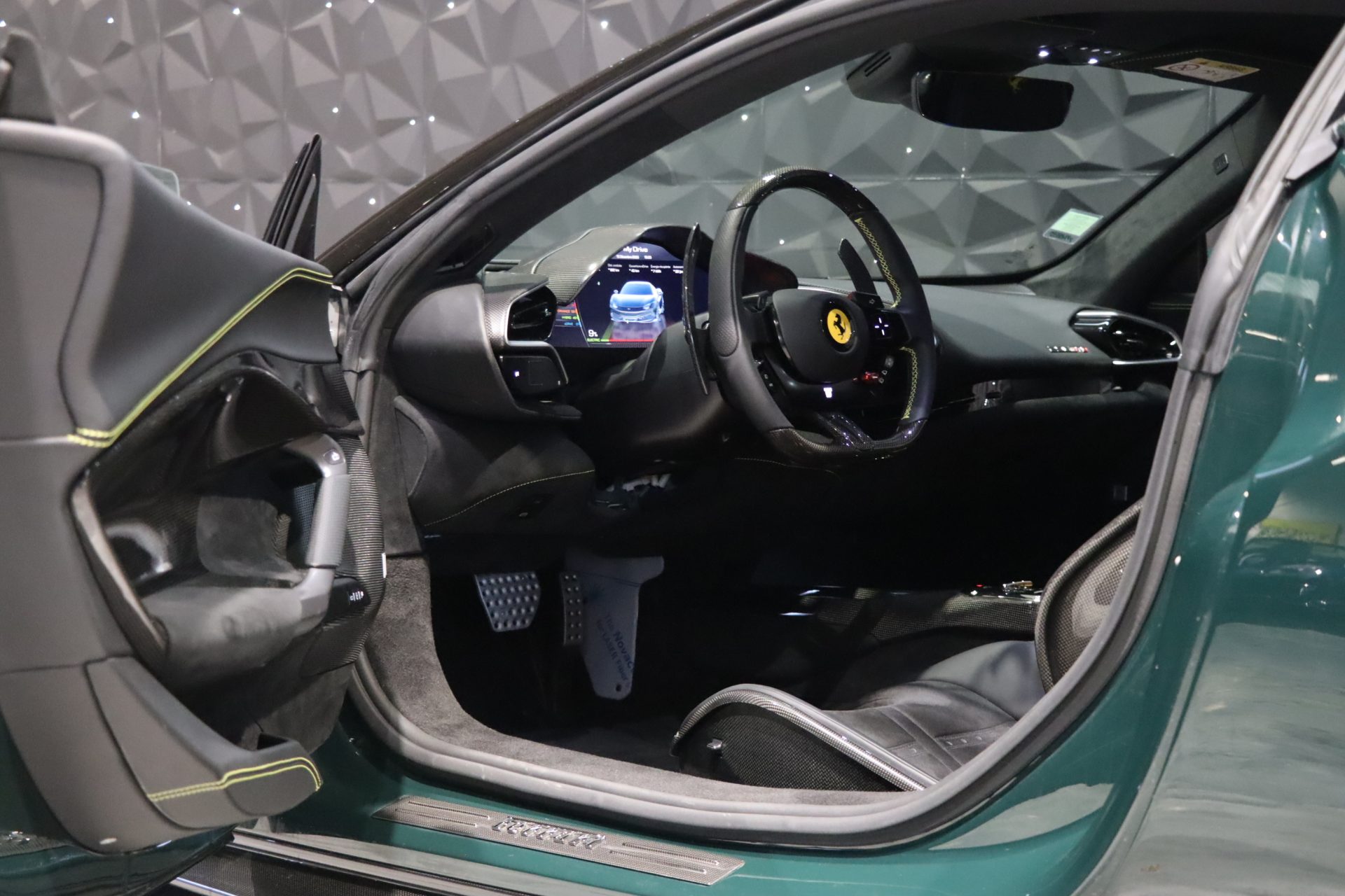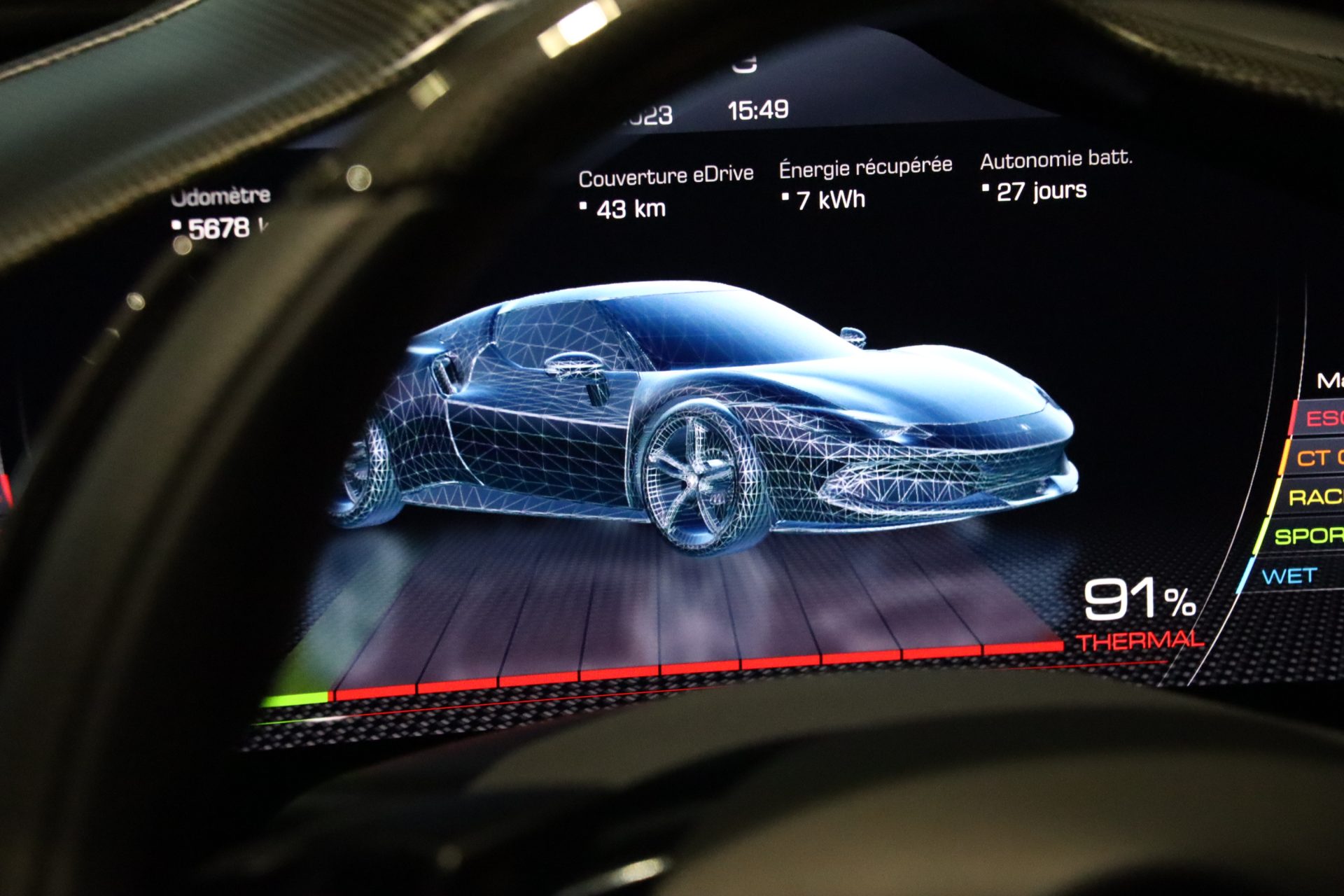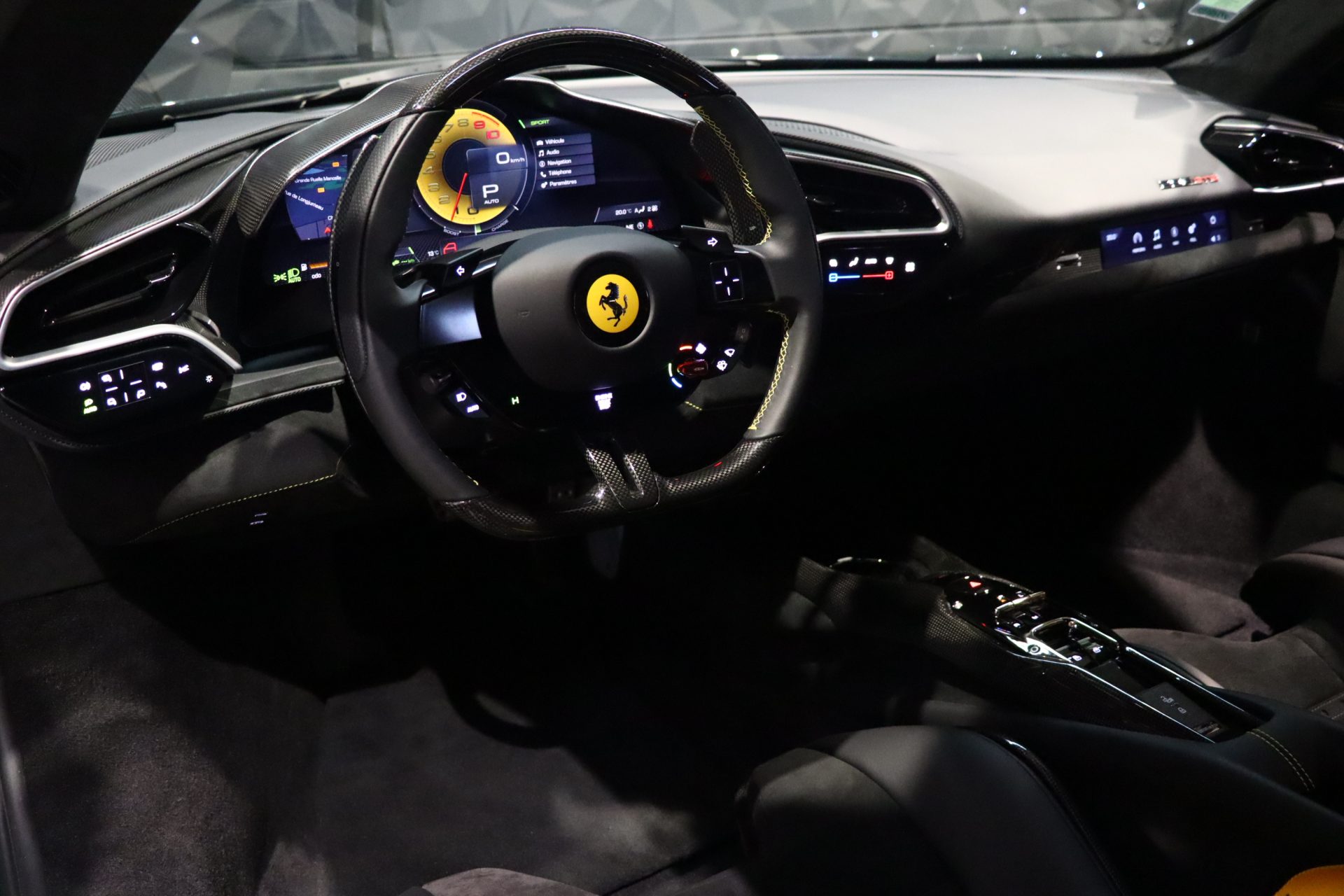 Pendant des années, Ferrari a fait preuve de son talent en matière de moteur thermique avec sa gamme de moteur V12 et V8. La 296 GTB est la première Ferrari de série à être équipée d’un moteur V6 Bi-Turbo. Pour autant, le moteur V6 chez Ferrari est ancrée dans l’ADN de la Scuderia, en effet: la première Ferrari à présenter un V6 central-arrière était la 246 SP de 1961, voiture qui remporta entre autres la Targa Florio cette année-là et en 1962. Toujours en 1961, Ferrari remporta son premier titre constructeurs de Formule 1 avec la 156 F1 équipée d’un V6 à 120°. La différence notable aujourd’hui est que ce V6 de 3.0L de cylindrée est hybridé, à l’instar de sa grande sœur le SF90 sur laquelle la 296GTB s’appuie fortement en termes de technologie. La puissance combinée du moteur hybride et du V6 turbocompressé atteint 830ch directement transmise aux roues arrières. Un moteur de petite taille associé à un moteur électrique n’aurait jamais été considéré comme une voie dans laquelle Ferrari aurait pu s’engager, et pourtant le passage à l’électrique est bel et bien en cours et Ferrari a frappé fort avec une 296 ultra performante et dont la sonorité a été travaillée à merveille par les ingénieurs de Maranello.