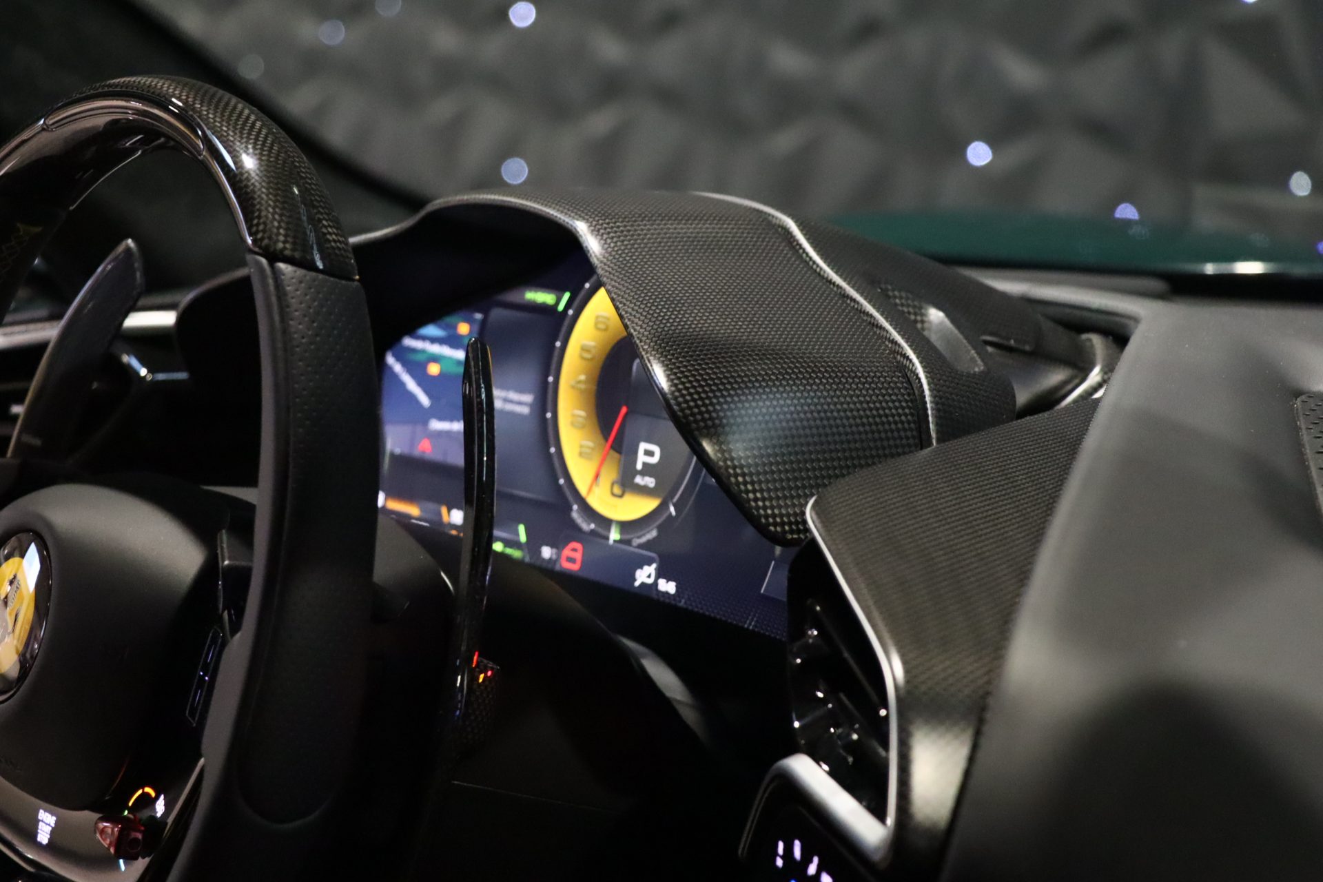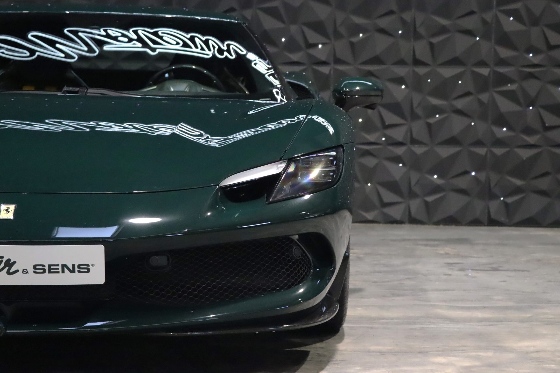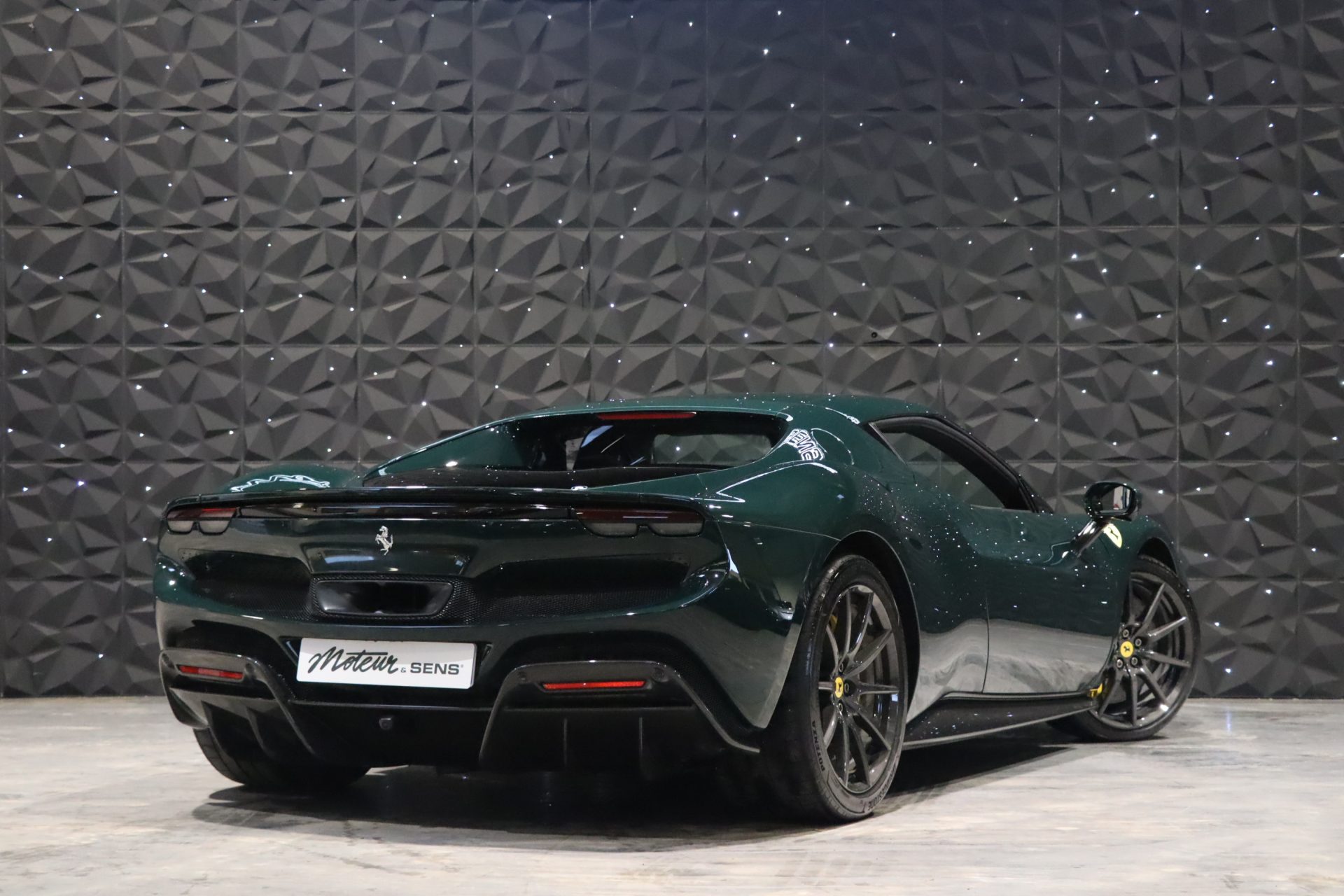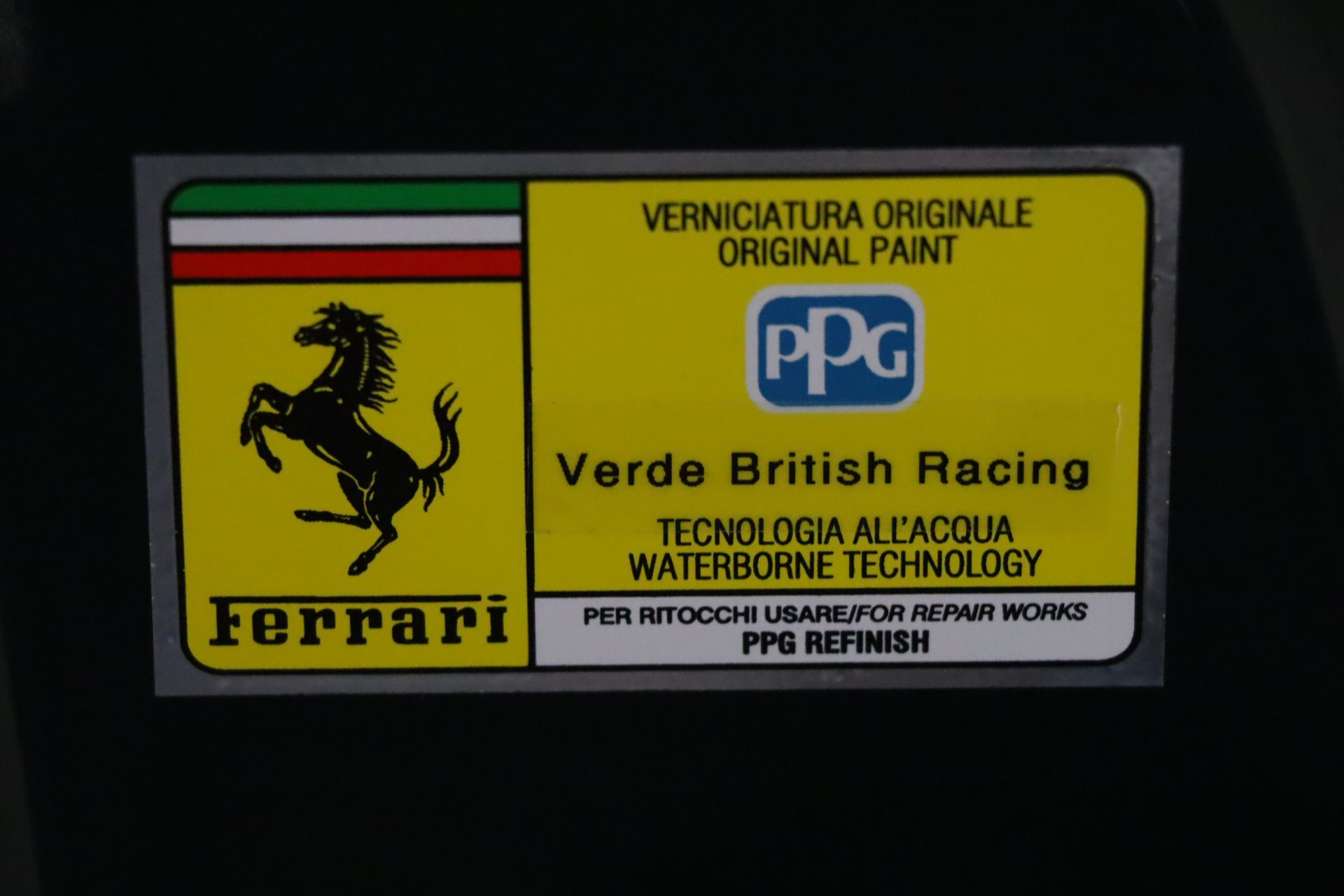 L’exemplaire que nous vous proposons aujourd’hui est Française d’origine, livrée neuve par Ferrari Toulouse et dont la configuration est absolument exceptionnelle. L’auto est présentée dans une livrée Historique « Verde British Racing » avec un intérieur Daytona Cuir et Alcantara. On y retrouve en options les impressionnantes jantes Carbone (21.000€), les sièges Racing Daytona, Le Lift System, La caméra Panoramique et du Carbone à profusion ! La voiture est en parfait état et la face avant est protégée par un film transparent Xpel.