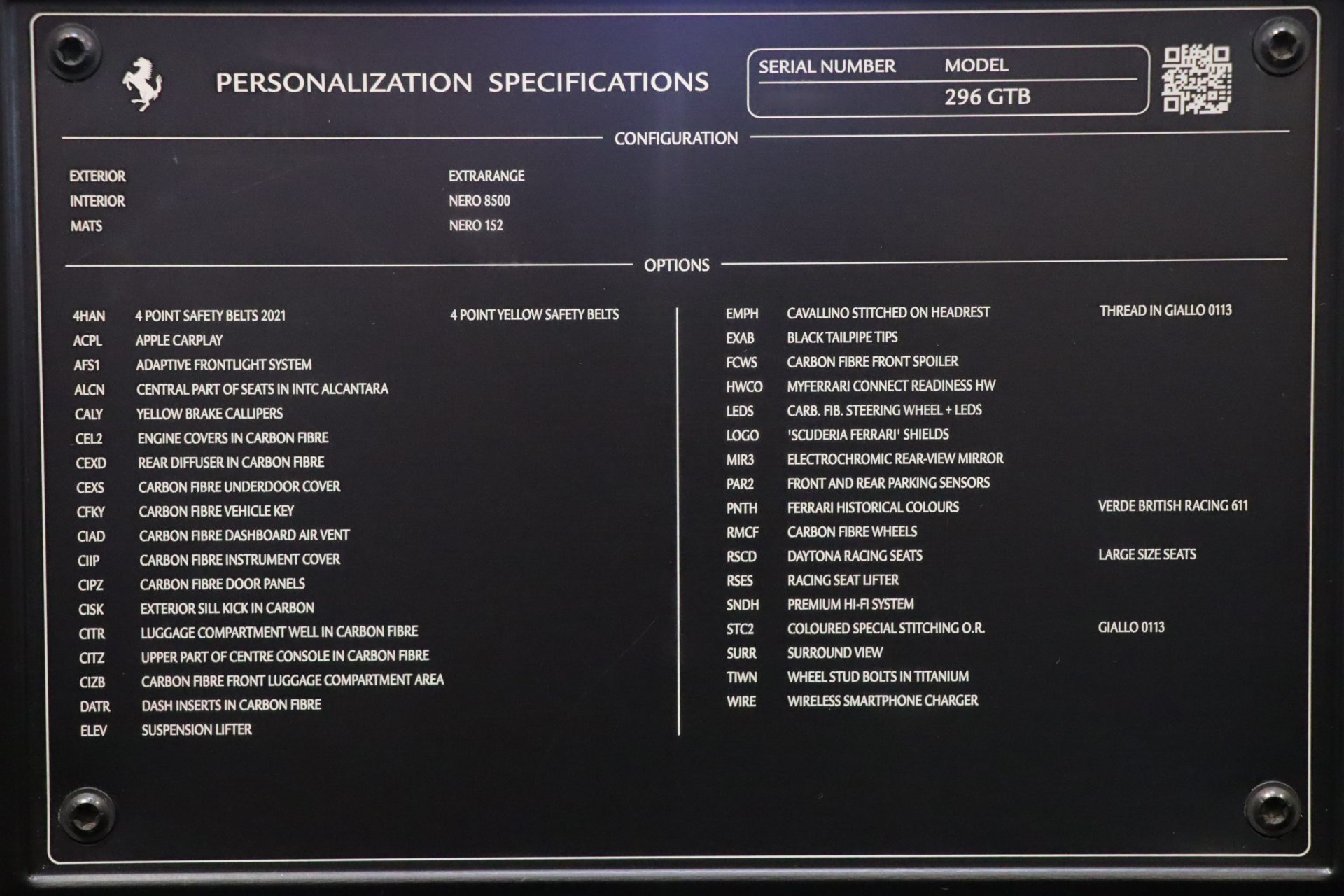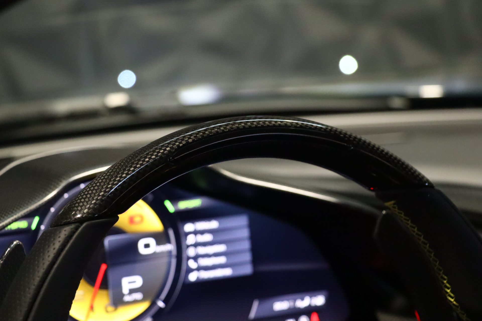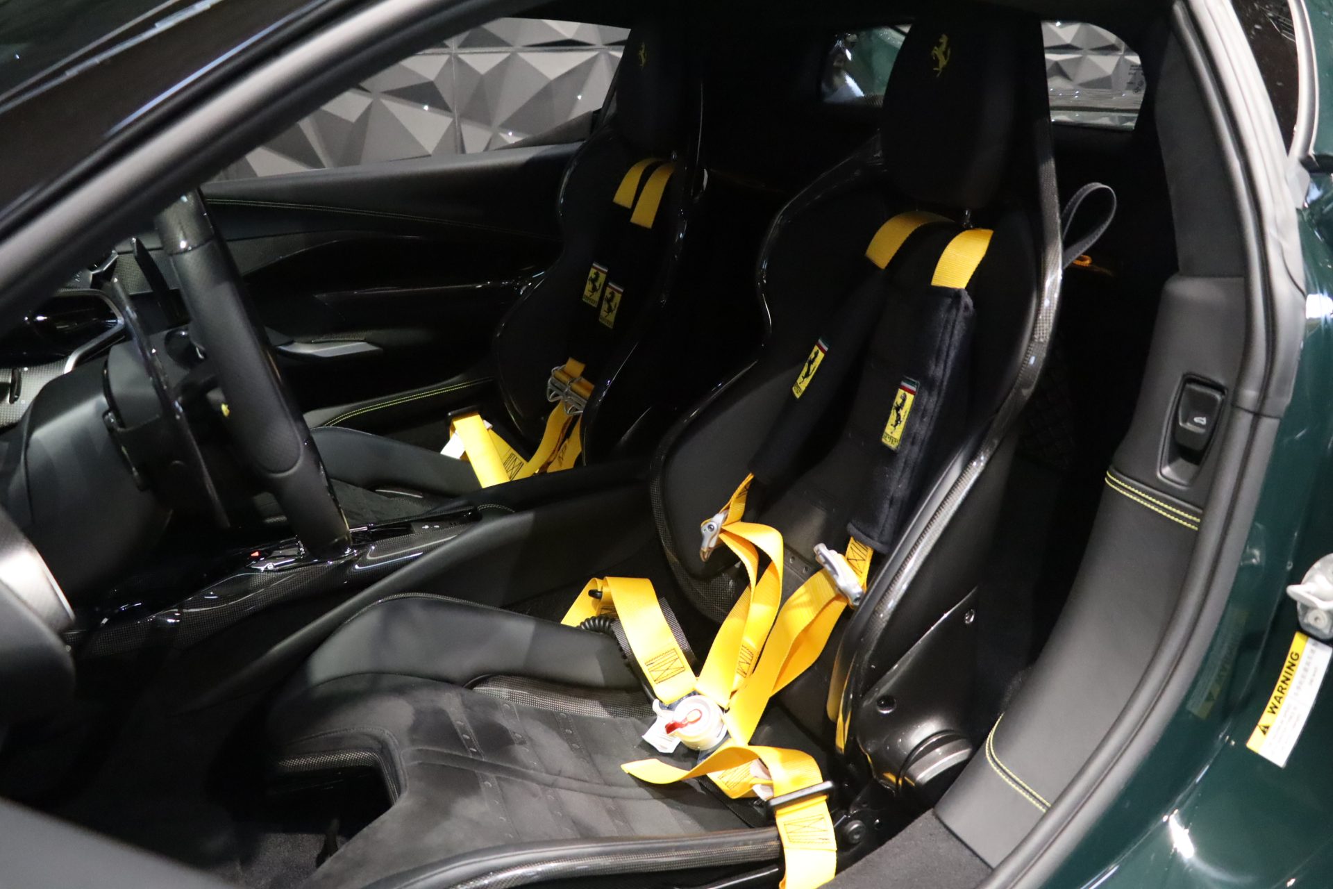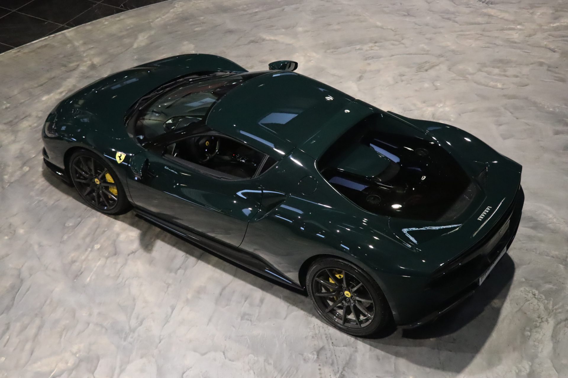 L’exemplaire que nous vous proposons aujourd’hui est Française d’origine, livrée neuve par Ferrari Toulouse et dont la configuration est absolument exceptionnelle. L’auto est présentée dans une livrée Historique « Verde British Racing » avec un intérieur Daytona Cuir et Alcantara. On y retrouve en options les impressionnantes jantes Carbone (21.000€), les sièges Racing Daytona, Le Lift System, La caméra Panoramique et du Carbone à profusion ! La voiture est en parfait état et la face avant est protégée par un film transparent Xpel.