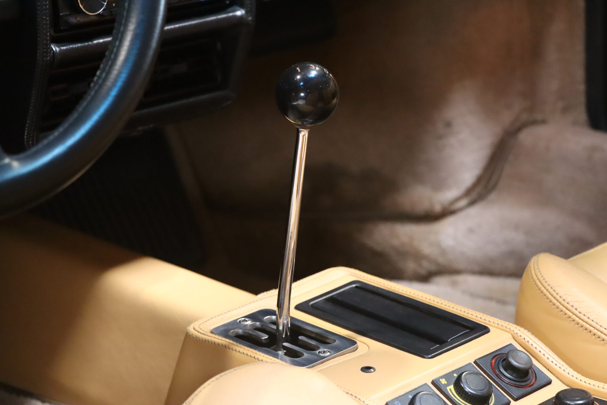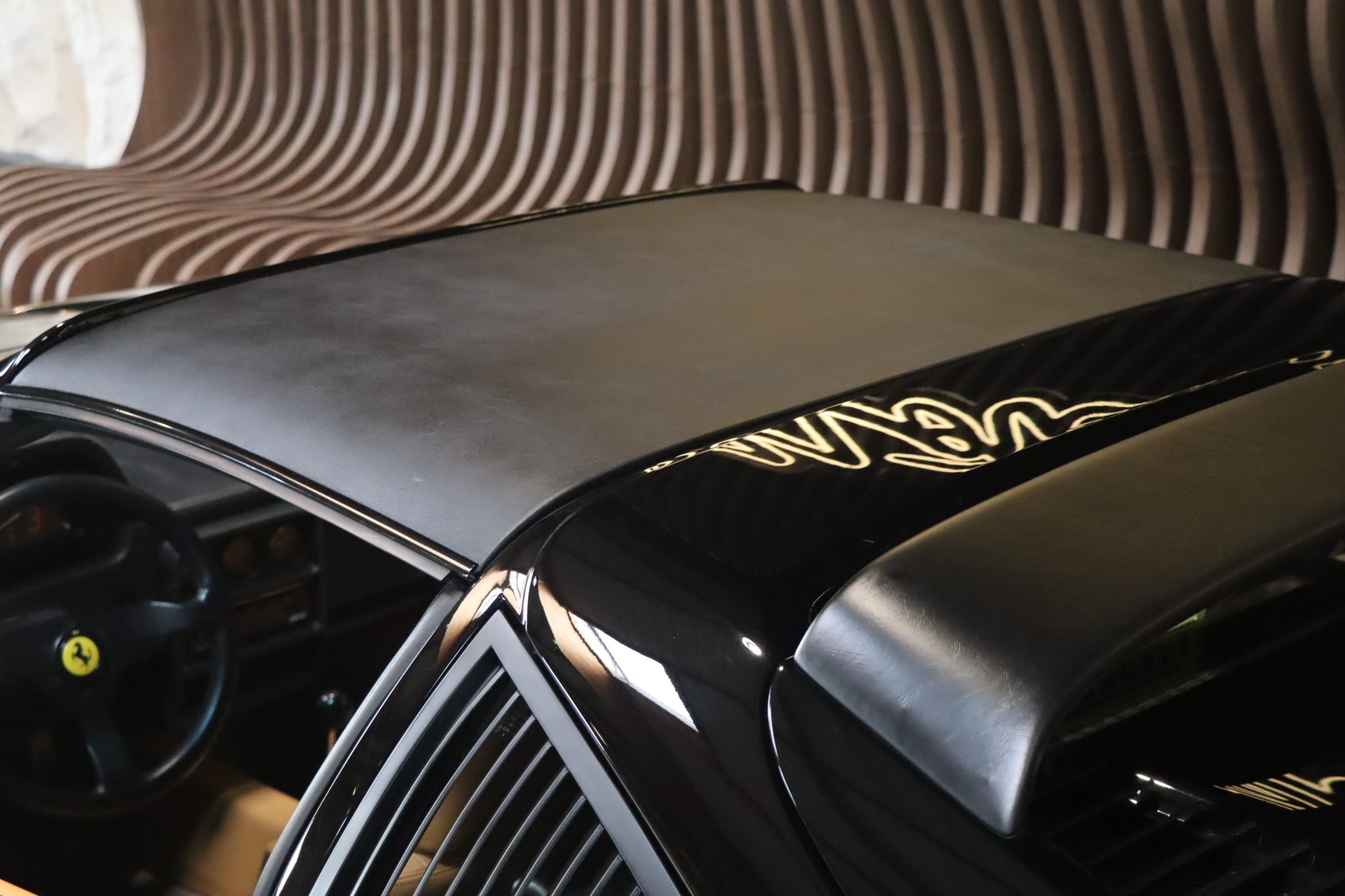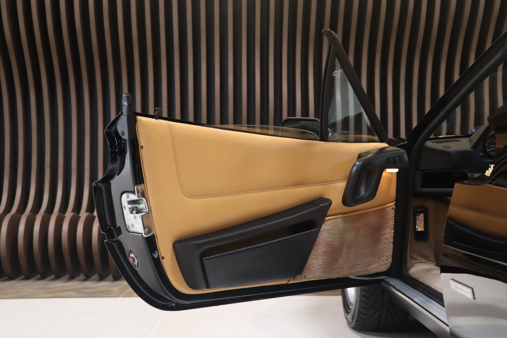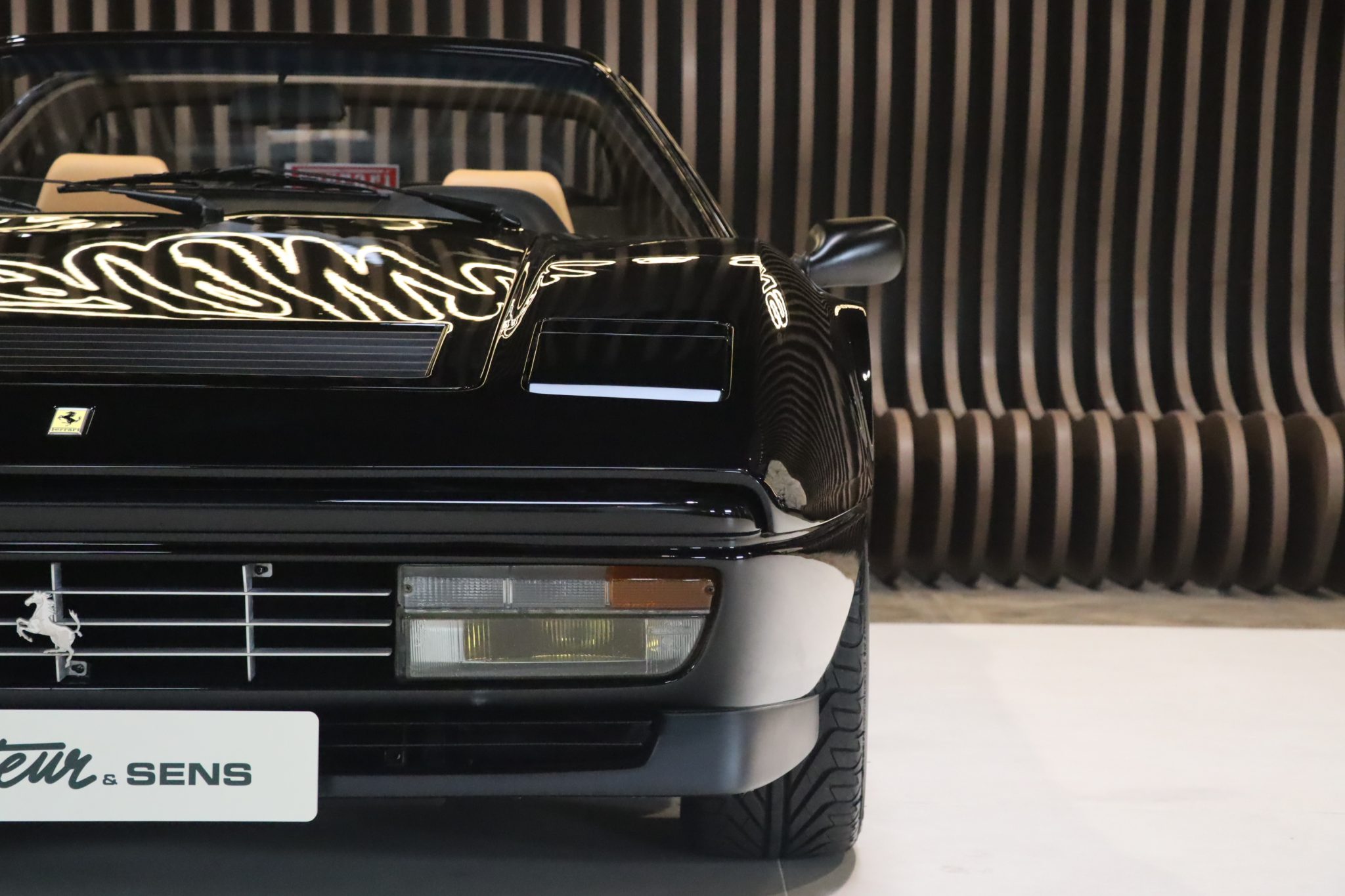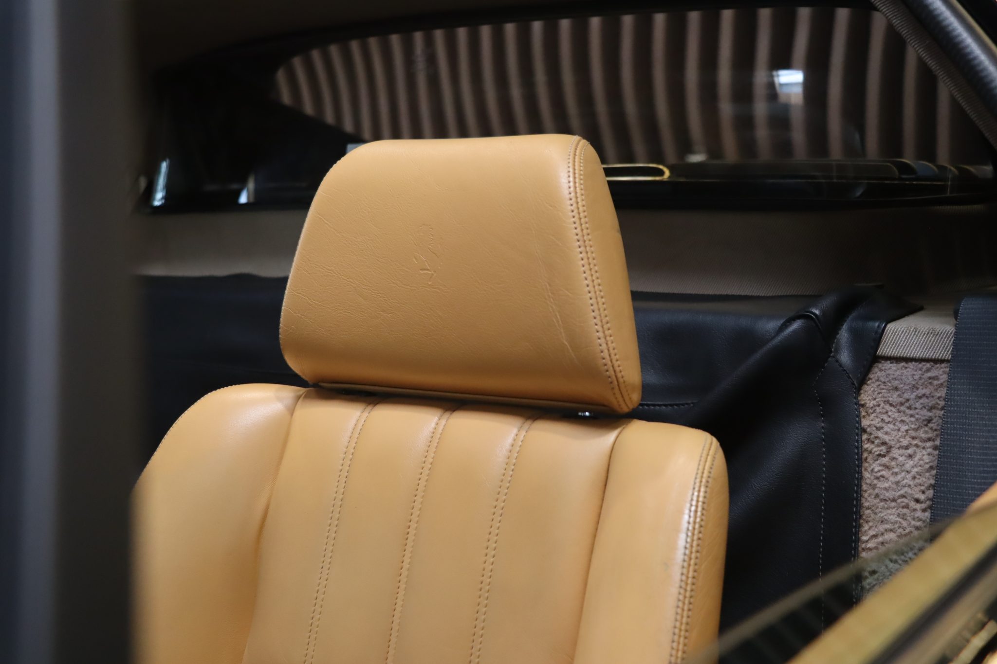 Notre exemplaire est un modèle d’origine française livrée chez Charles Pozzi dans une très belle configuration. La teinte Nero Fer 1240 est d’origine ainsi que l’intérieur en cuir beige.