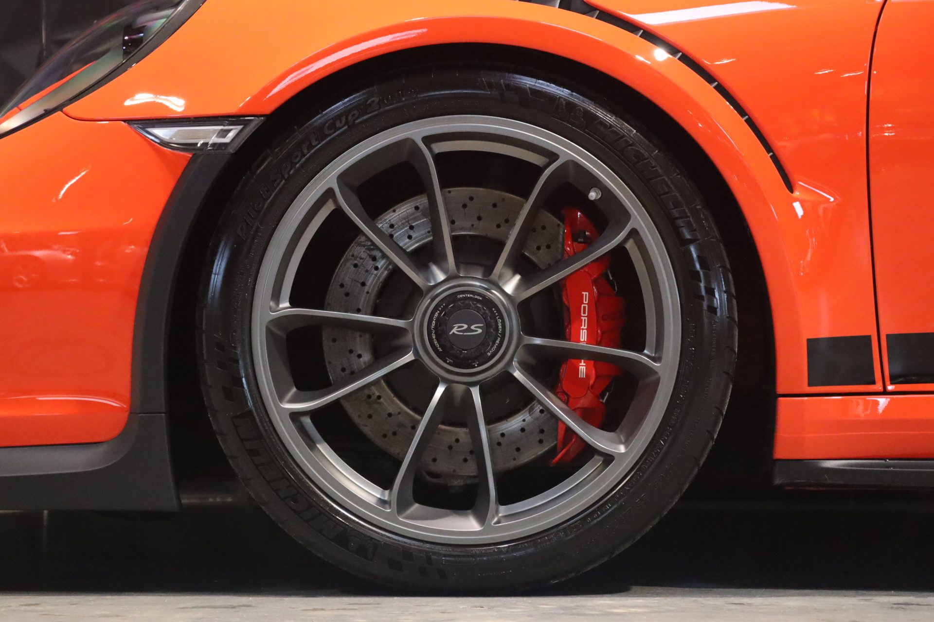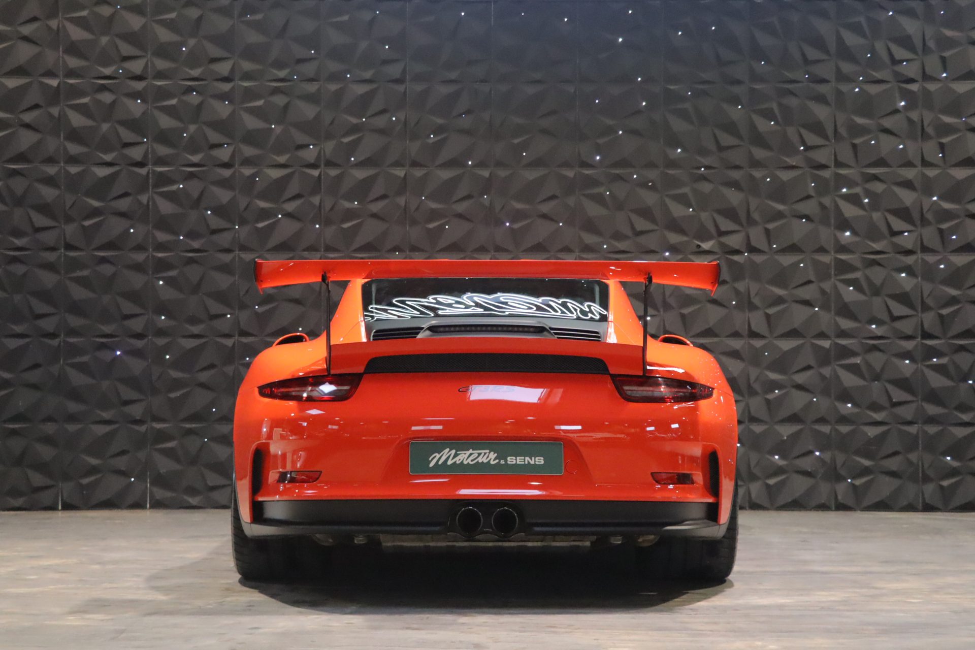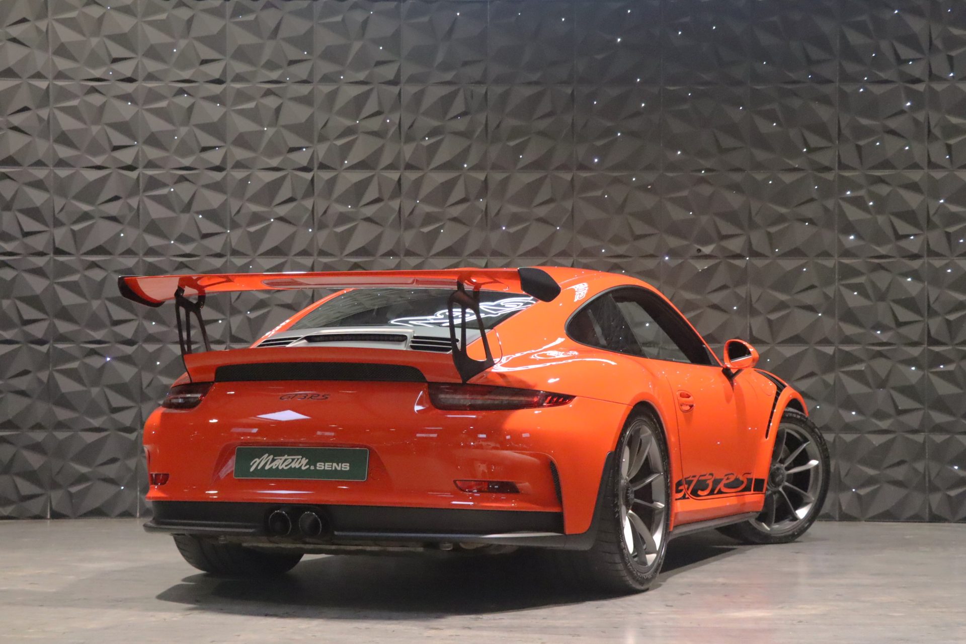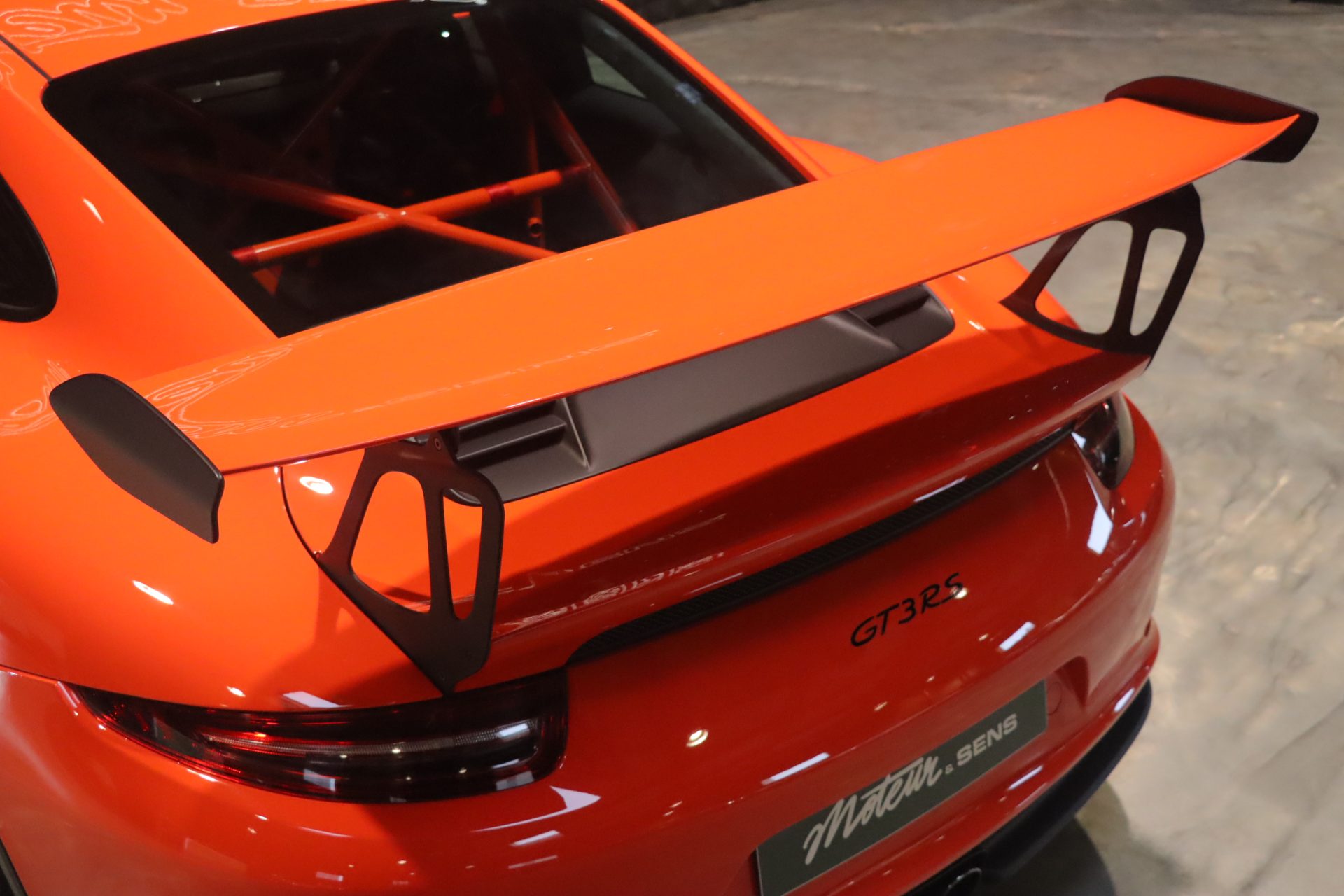 La Porsche 991 GT3 RS descend d’une longue et prestigieuse lignée de sportives. Digne héritière de la mythique 911 Carrera 2.7 RS dite « Clubsport », la philosophie n’a pas changé. Le programme est simple : favoriser les sensations de conduite grâce à une optimisation mécanique et surtout à l’allègement de l’auto. Cette génération n’échappe pas à cette règle puisque 10 kilos sont gagnés sur la balance par rapport à la GT3 grâce à l’utilisation massive de carbone.. Les ailes avant et arrière ainsi que le capot se percent de larges ouïes, quand le toit et le capot se parent de nervures. Mais c’est sous le capot que la 991 GT3 RS devient encore plus savoureuse : son flat 6 4.0 l de 500 ch, toujours atmosphérique est capable de prendre 9000 tr/min ! Le pilotage n’est pas oublié puisque les réglages de châssis et de trains sont revus afin de faire de cette GT3 RS une bête de circuit. Elle a d’ailleurs détenu le record du tour sur la célèbre Nordschleife du Nürburgring.