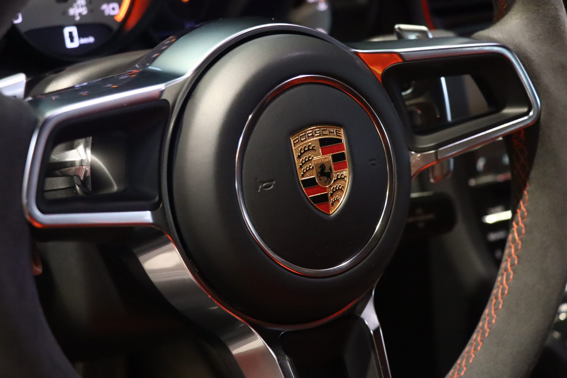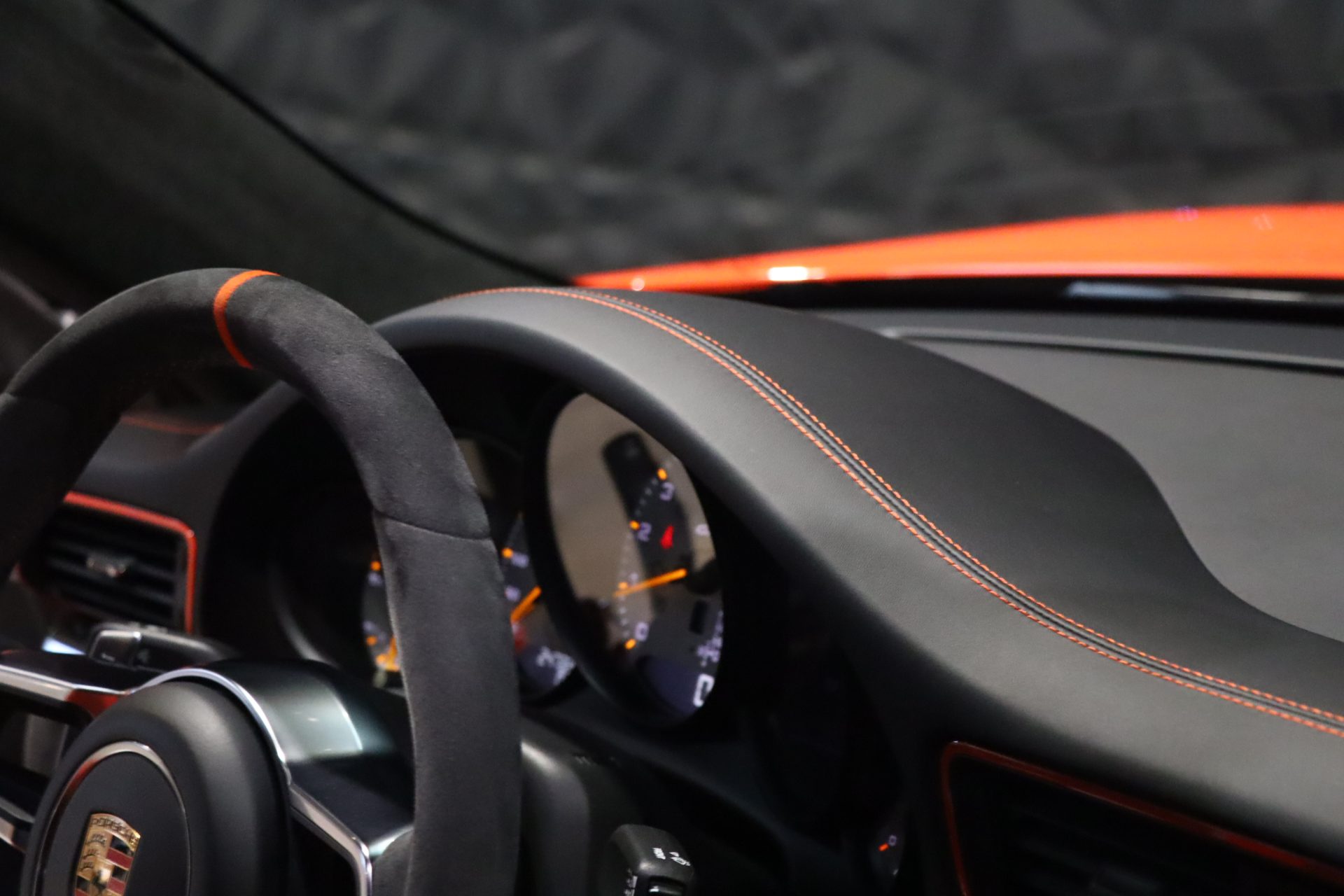 Notre exemplaire est présenté dans une superbe configuration Orange Fusion avec un intérieur tout cuir et alcantara. L’auto dispose de toutes les options enviables de cette génération avec notamment le Pack Clubsport, le lift system, le pack intérieur carbone, le cuir étendu, le réservoir 90L etc… Il s’agit d’une deuxième main Française d’origine, la voiture est en parfait état et la face avant est protégée par un film transparent. Cette auto dispose d’un entretien rigoureux et parfaitement suivi par Porsche, celui-ci est à jour (dernière révision en 02/2025 à 19 704 km par Porsche).