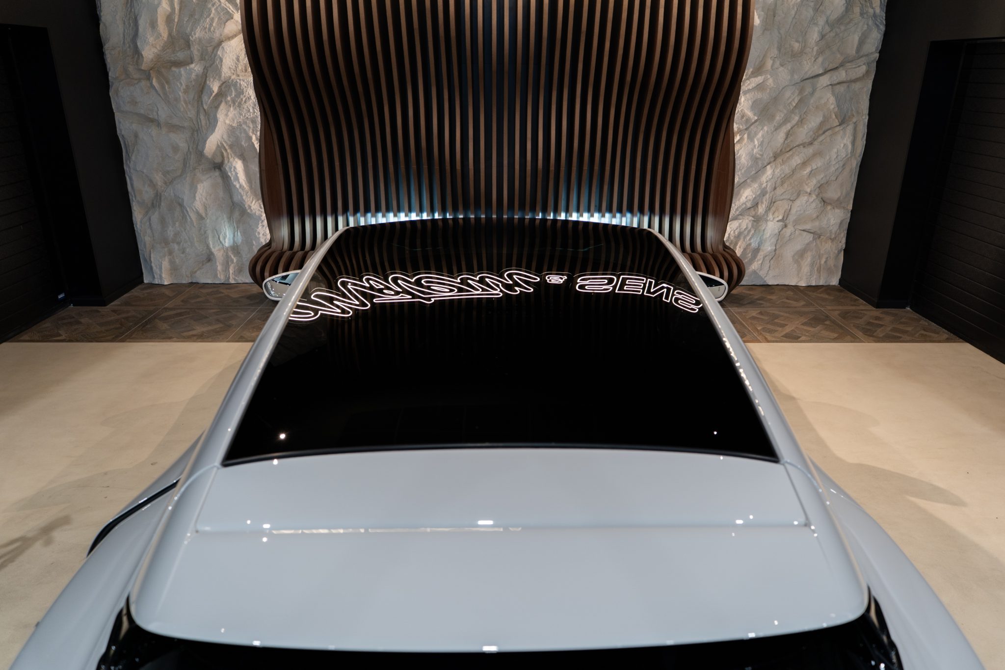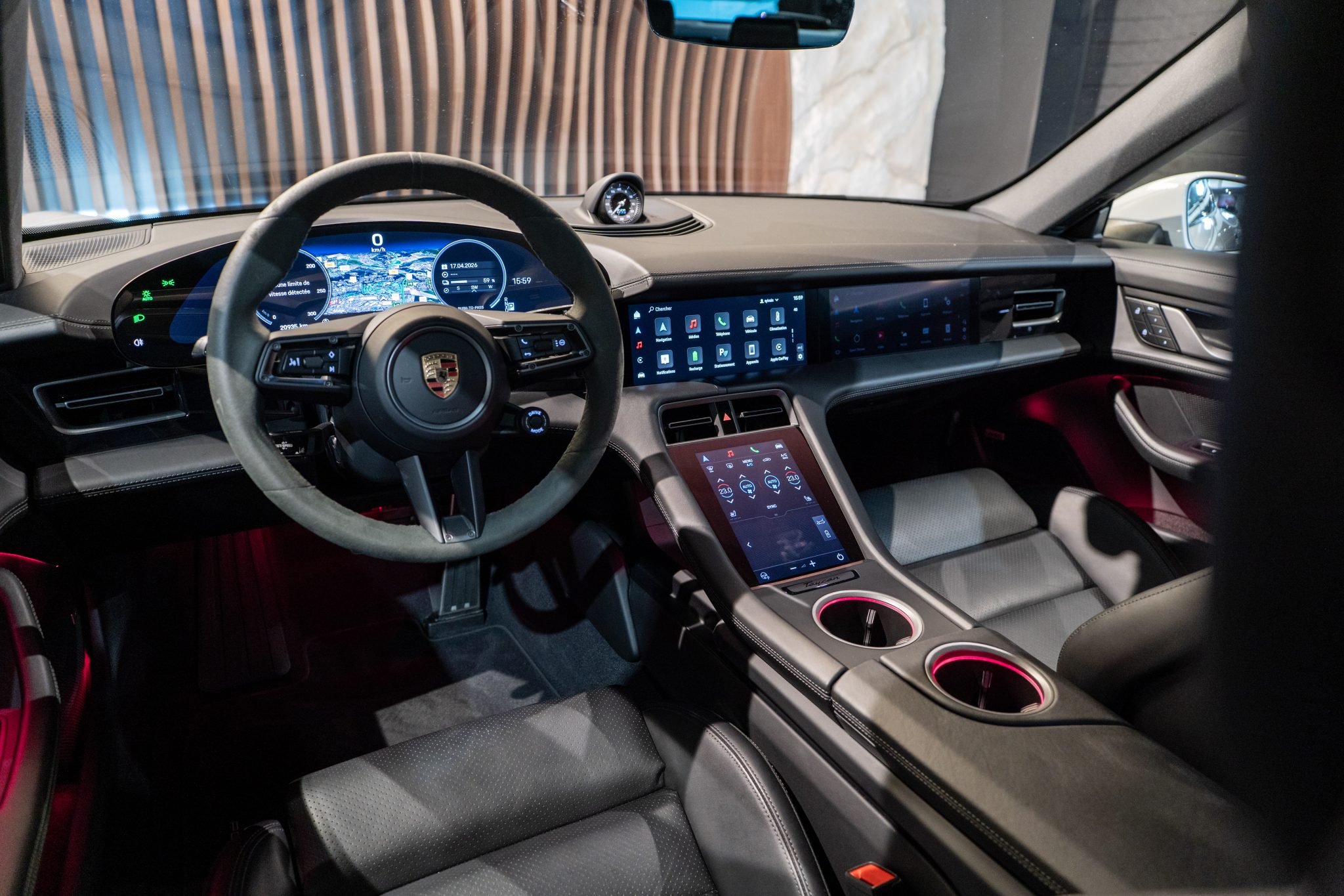 Sa couleur extérieure Craie affirme parfaitement le caractère sportif et élégant de cette voiture. Cet exemplaire est quasiment toutes options, avec un prix neuf de 155 000 €, facture d’achat à l’appui.